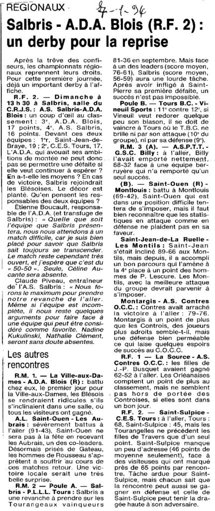 Saison 1993-1994 : Programme de la 12ème Journée des équipes du Loir et Cher dans les Championnats Régionaux