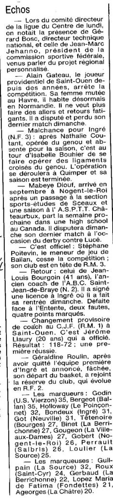 Saison 1993-1994 : Les Potins de la Ligue du Centre de Basket