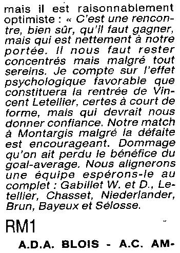 Saison 1993-1994 : Programme de la 13ème Journée des équipes du Loir et Cher dans les Championnats Régionaux