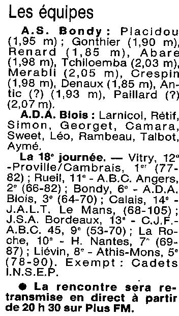 Saison 1993-1994 : En Nationale Masculine 2, l’ADA Blois s’incline à Bondy