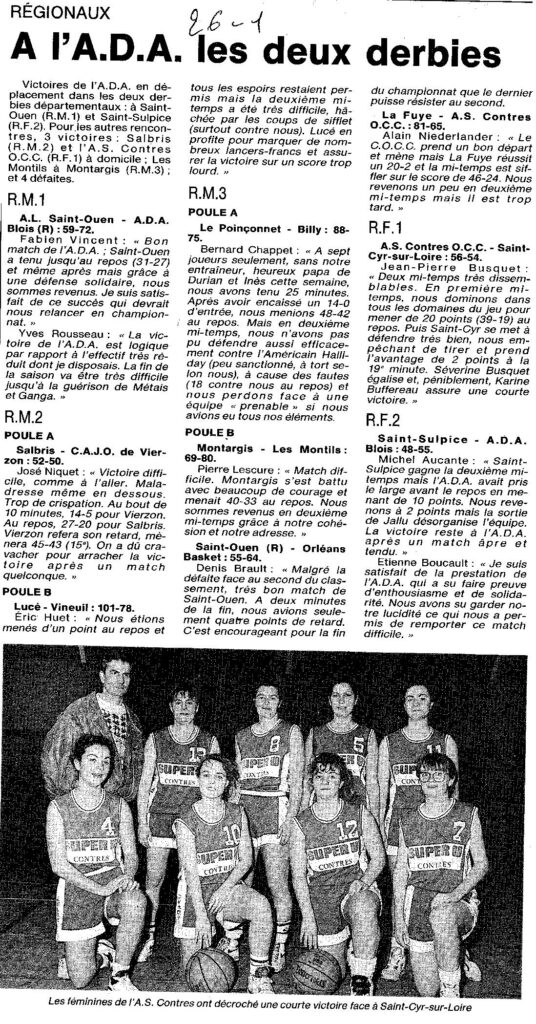 Saison 1993-1994 : Bilan de la 14ème Journée pour les équipes du Loir et Cher dans les Championnats Régionaux
