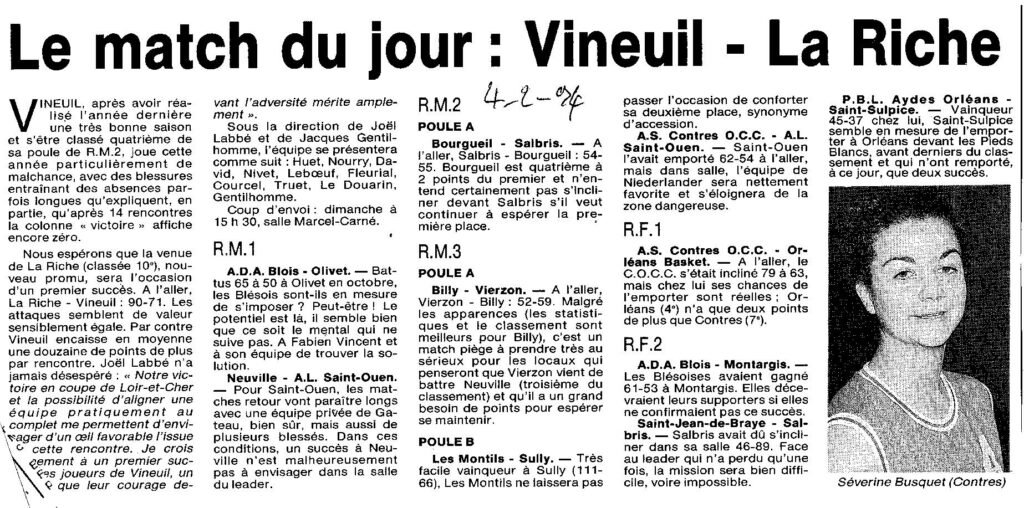 Saison 1993-1994 : Programme de la 15ème Journée des équipes du Loir et Cher dans les Championnats Régionaux