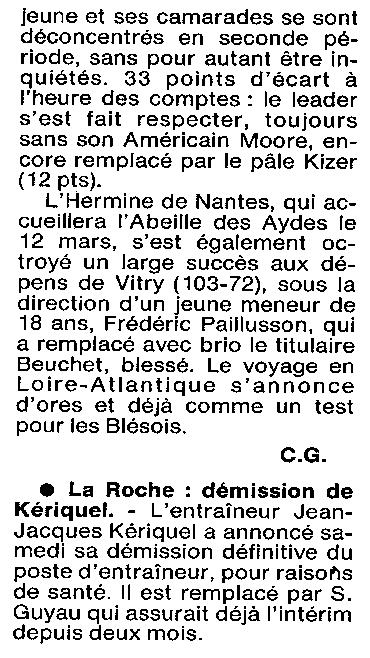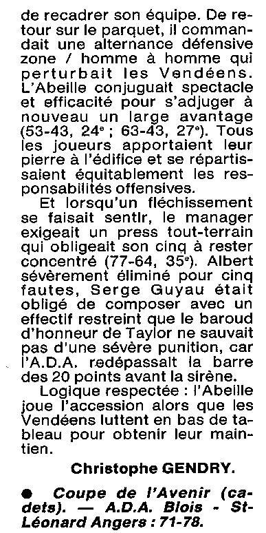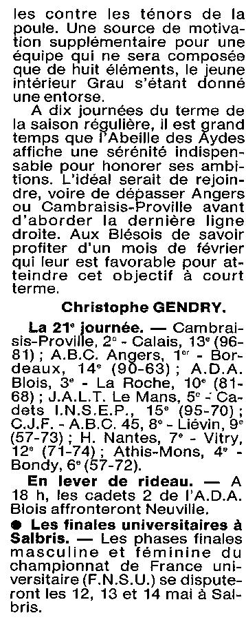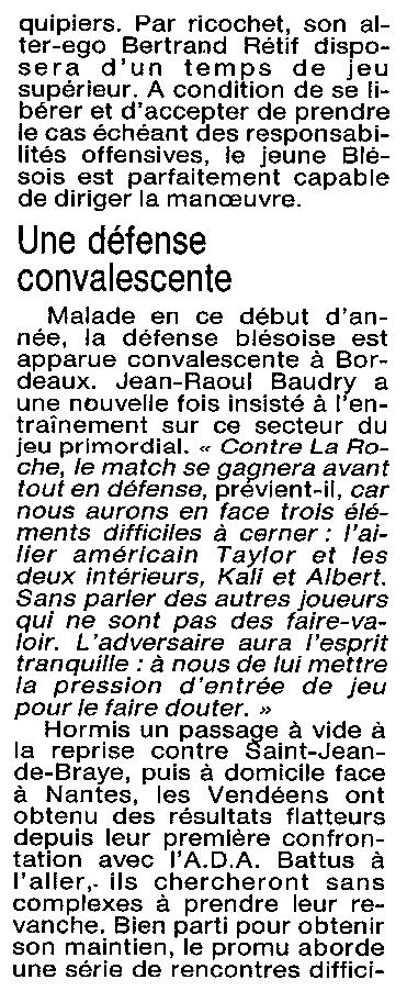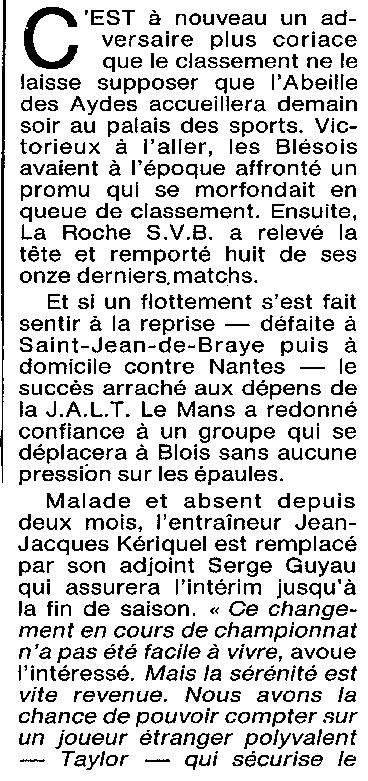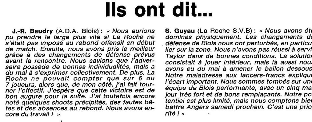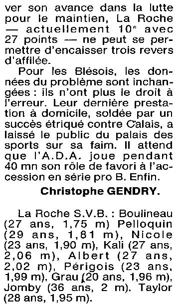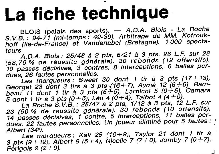 Saison 1933-1994 : En Nationale Masculine 2, l’ADA Blois s’impose à domicile face à La Roche SVB