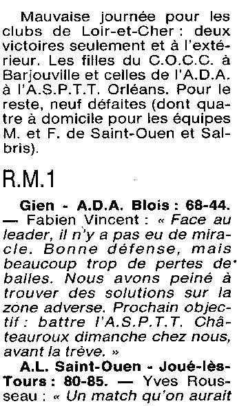 Saison 1993-1994 : En Championnat Régionale Masculine 1, Gien bat l’ADA Blois (R) »