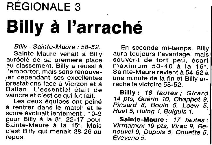 Saison 1993-1994 : En Championnat Régionale Masculine 3, Billy bat Sainte Maure