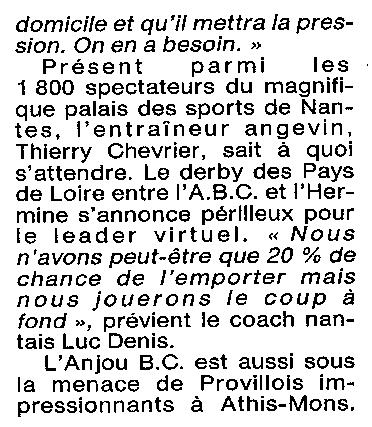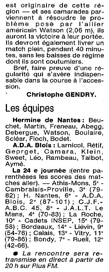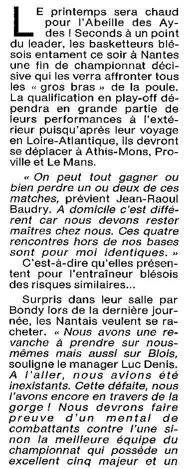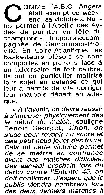 Saison 1993-1994 : En Nationale Masculine 2, l’ADA Blois s’impose à Nantes