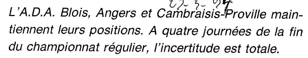 Saison 1993-1994 : En Nationale Masculine 2, l’ADA Blois à la lutte pour les play-off !