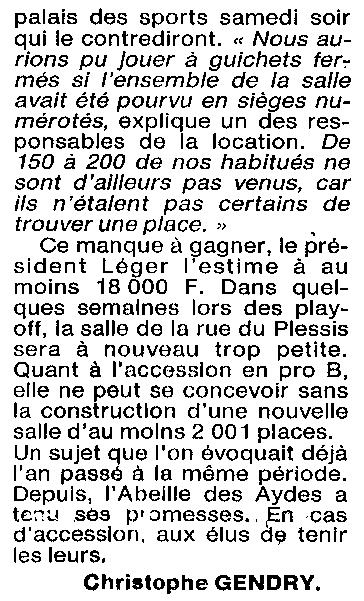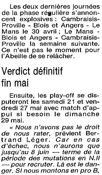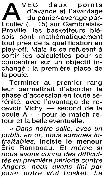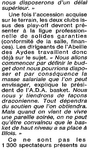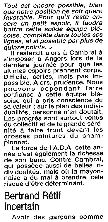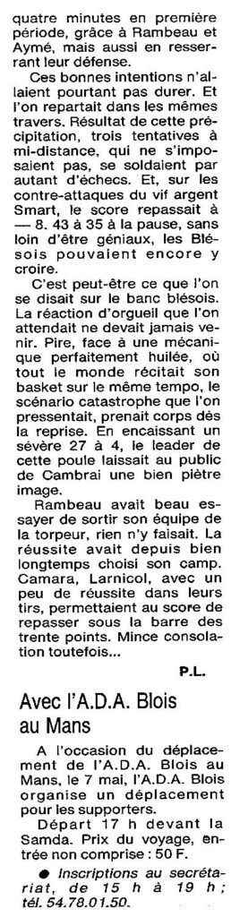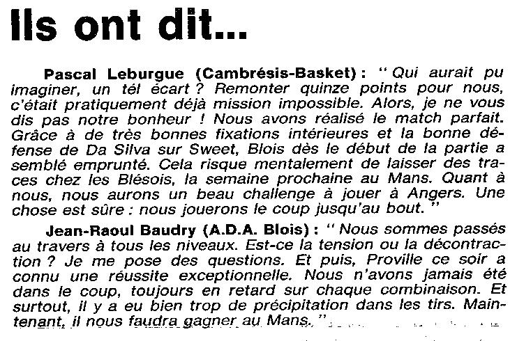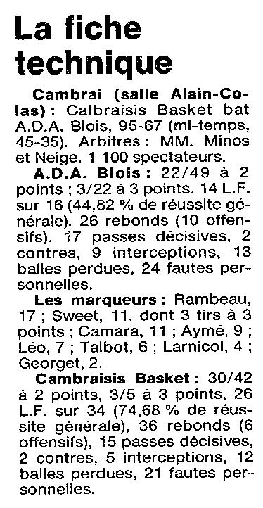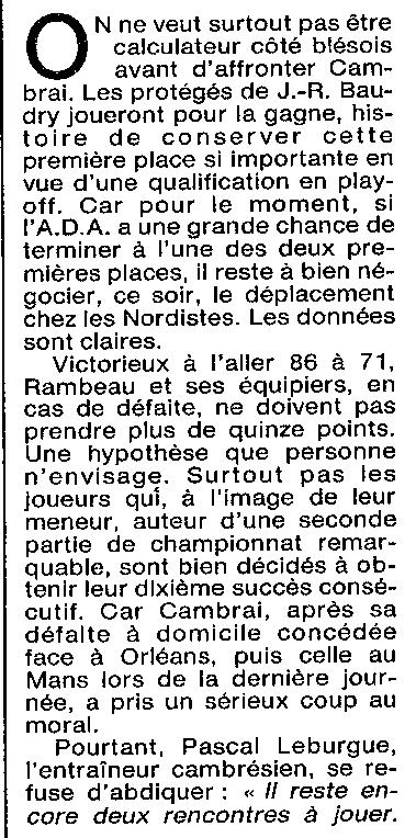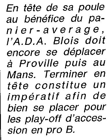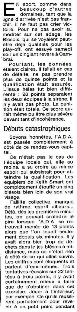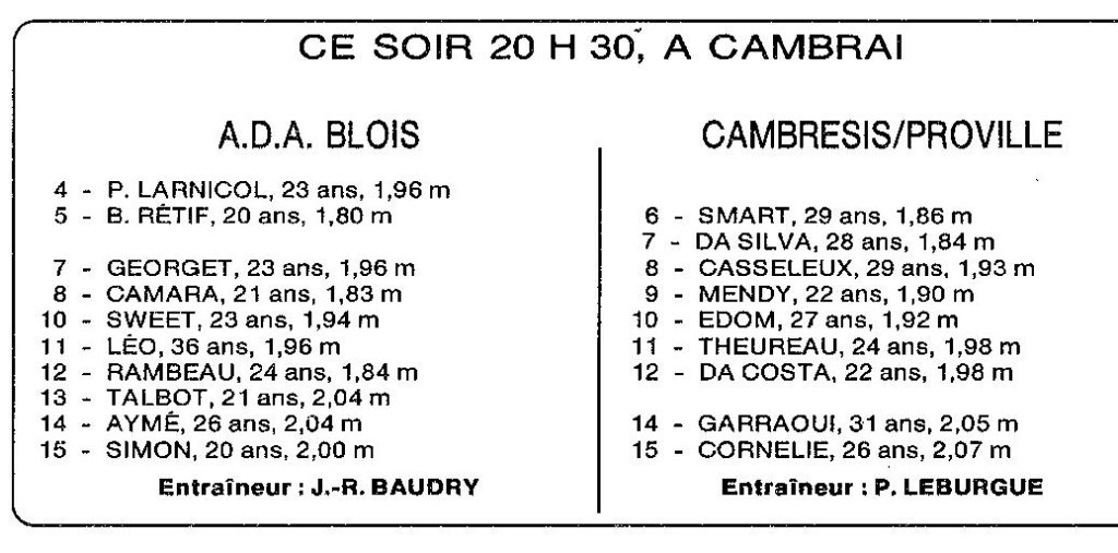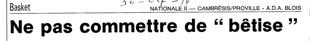 Saison 1993-1994 : En Nationale Masculine 2, l’ADA Blois s’incline à Cambrèsis/Proville