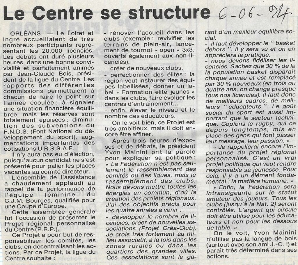 Saison 1993-1994 : Assemblée Générale de la Ligue du Centre à Ingré
