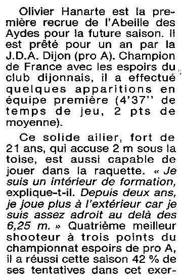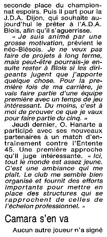 Saison 1994-1995 : Olivier Harnate, 1ère recrue de l’ADA Blois pour la nouvelle saison