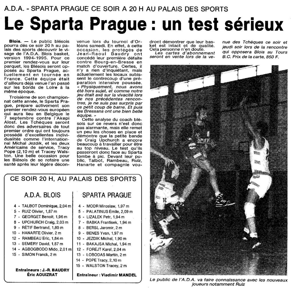 Saison 1994-1995 : L’ADA Blois reçoit le Sparta de Prague