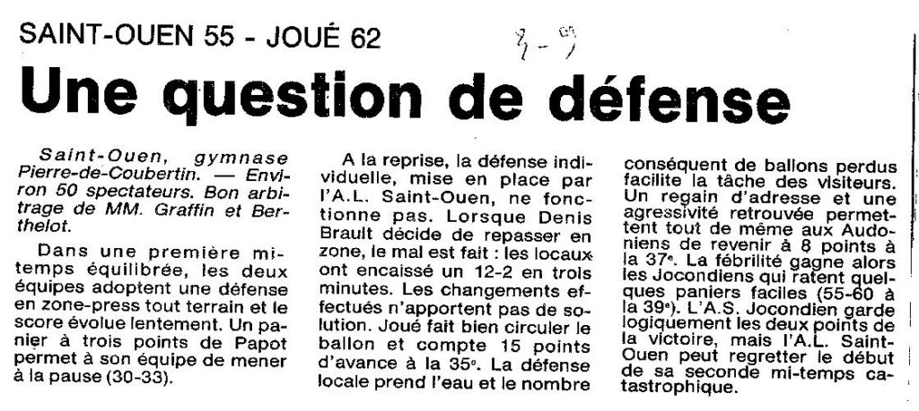 Saison 1994-1995 : En Championnat Régionale Masculine 1, Joué les Tours bat St Ouen