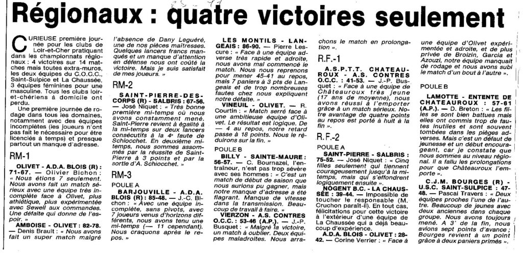 Saison 1994-1995 : Résultats de la 1ère Journée des équipes du Loir et Cher dans les Championnats Régionaux
