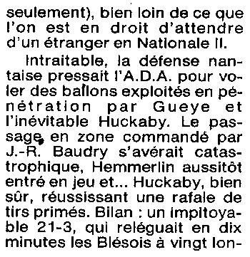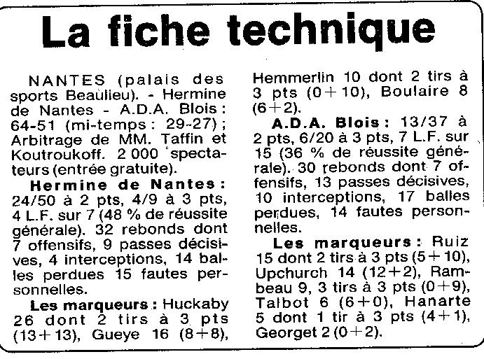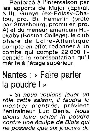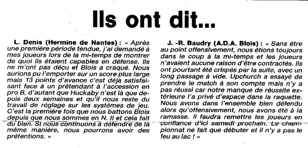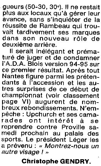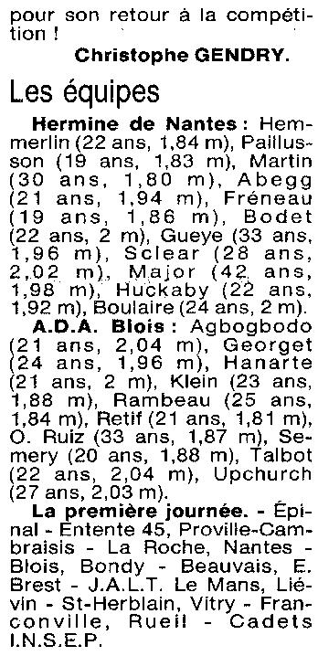 Saison 1994-1995 : Pour la 1ère Journée en Nationale Masculine 2, l’ADA Blois s’incline à Nantes