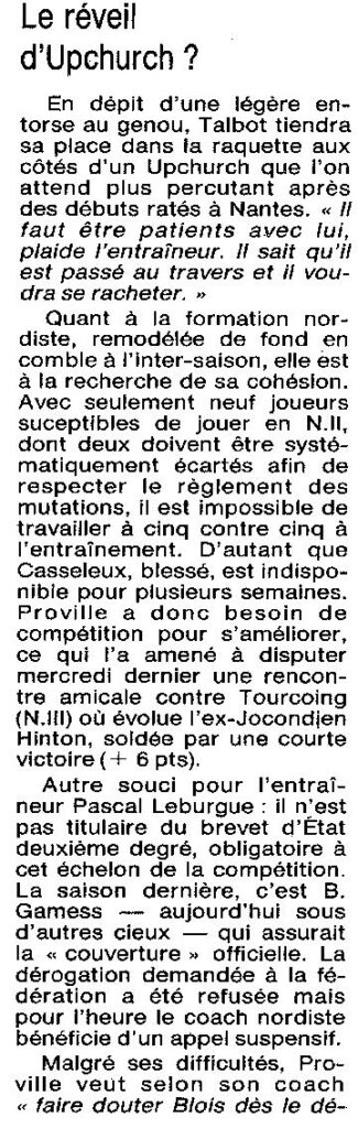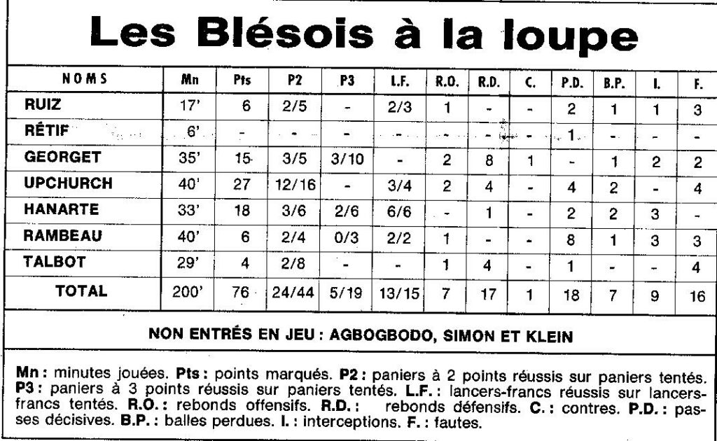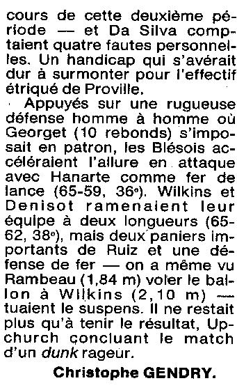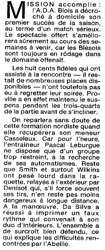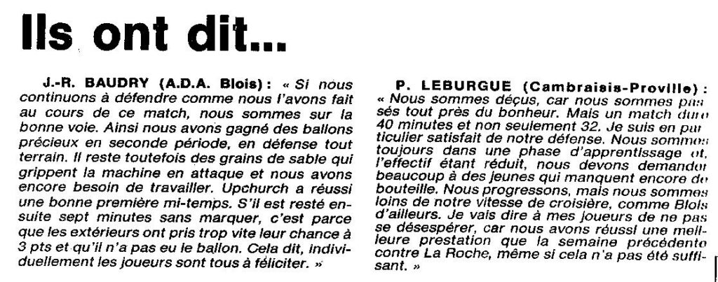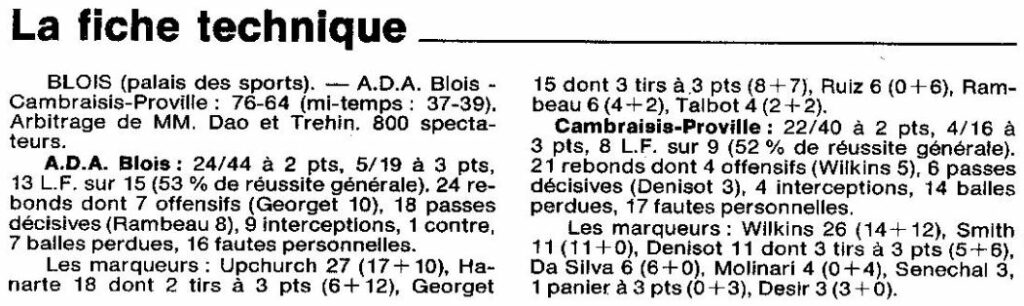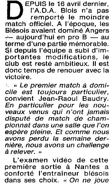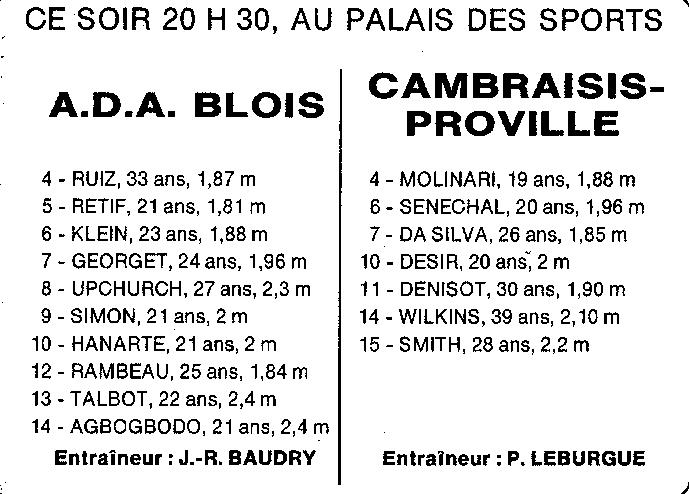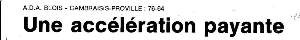 Saison 1994-1995 : En Nationale Masculine 2, à domicile, l’ADA Blois bat Cambraisis-Proville