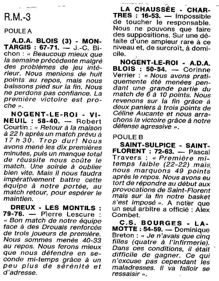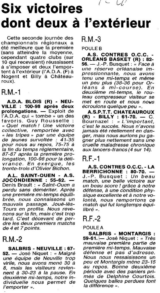Saison 1994-1995 : Résultats de la 2ème Journée des équipes du Loir et Cher dans les Championnats Régionaux