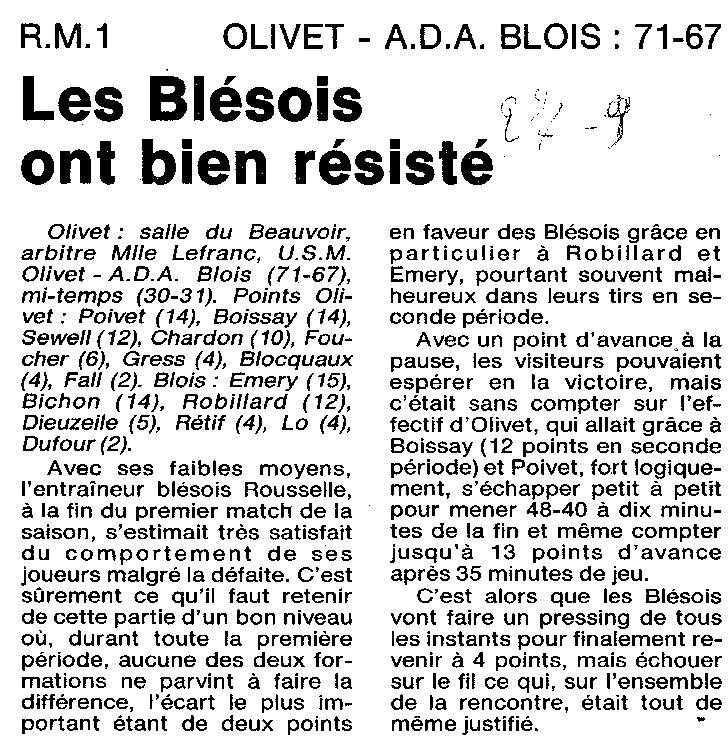 Saison 1994-1995 :En Championnat de Régionale Masculine 1, l’USM Olivet bat l’ADA Blois