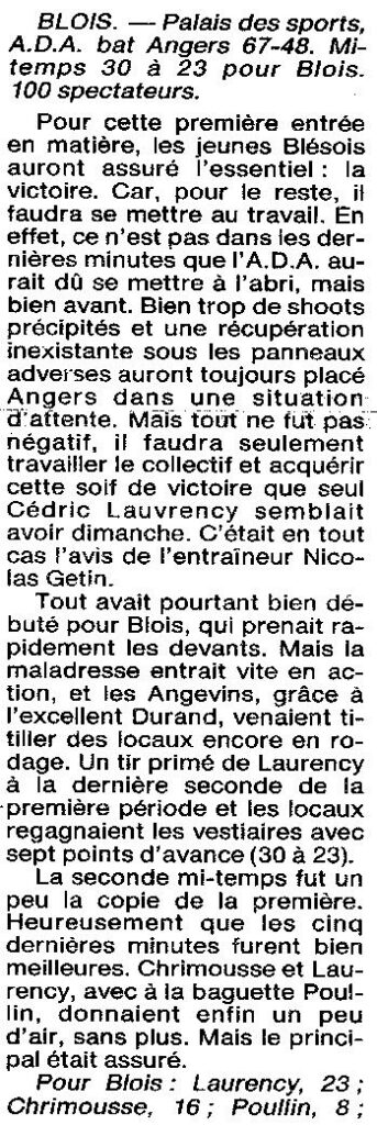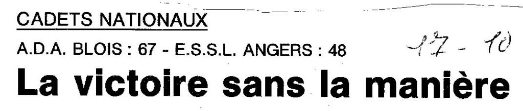 Saison 1994-1995 : En Championnat de France, les Cadets de l’ADA Blois s’imposent face à St Léonard Angers