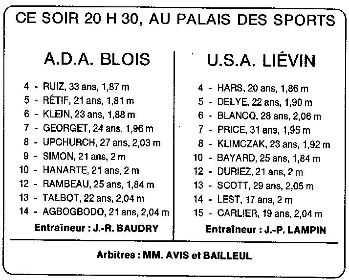 Saison 1994-1995 : En Championnat de Nationale Masculine 2, l’ADA Blois bat Liévin