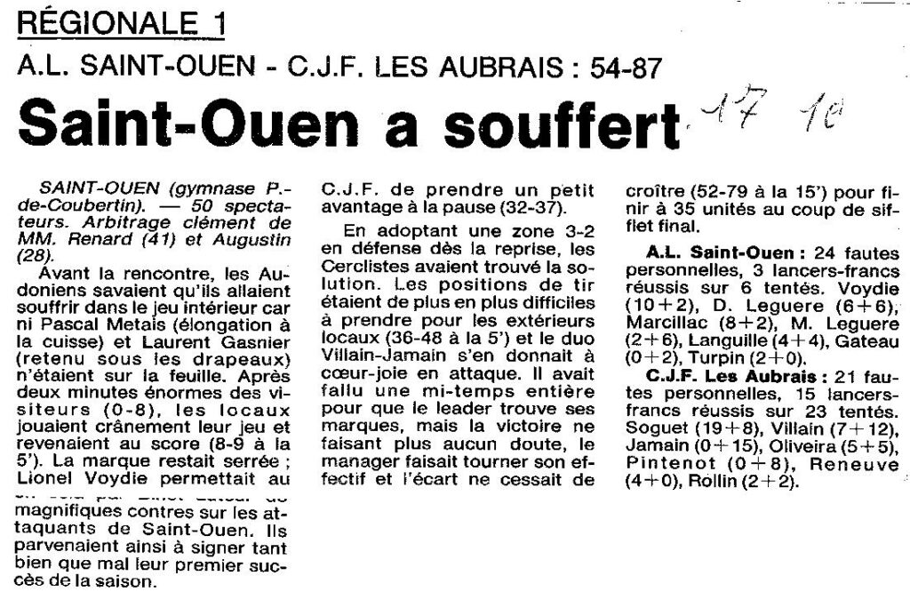 Saison 1994-1995 : En Championnat de Régionale Masculine 1, le CJF les Aubrais bat l’AL St Ouen Vendôme