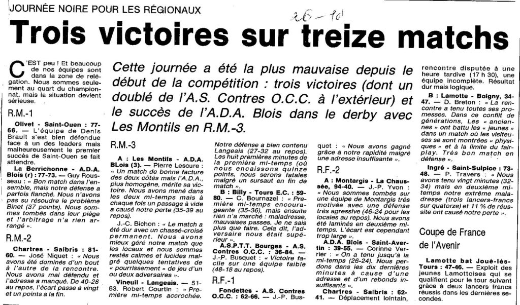 Saison 1994-1995 : Résultats de la 5ème Journée des équipes du Loir et Cher dans les Championnats Régionaux