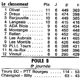 Saison 1994-1995 : Résultats et Classements de tous les Championnats Régionaux après la 6ème Journée