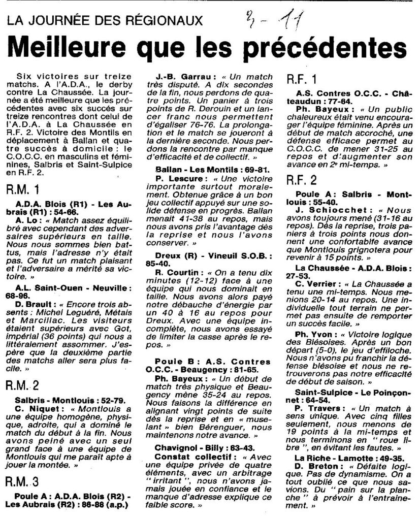 Saison 1994-1995 : Résultats de la 6ème Journée des équipes du Loir et Cher dans les Championnats Régionaux