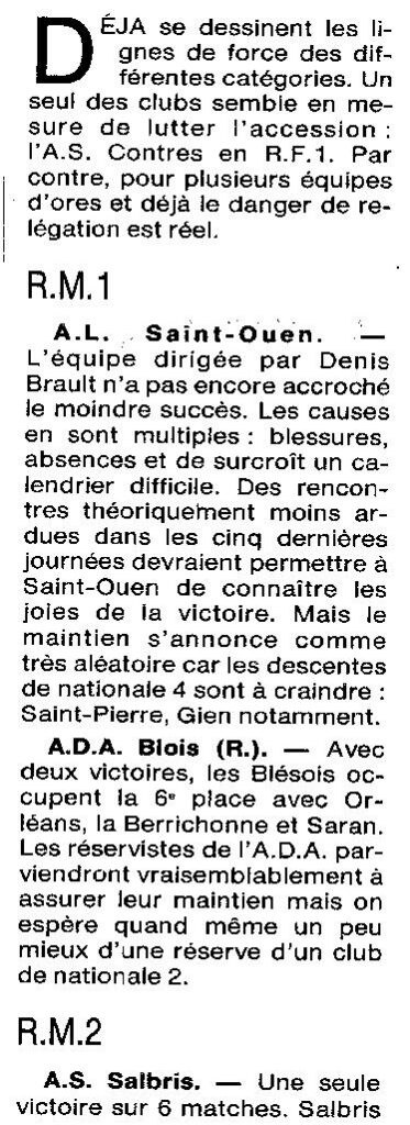Saison 1994-1995 : Le Point sur les équipes du Loir et Cher dans les Championnats Régionaux au quart de la Compétition