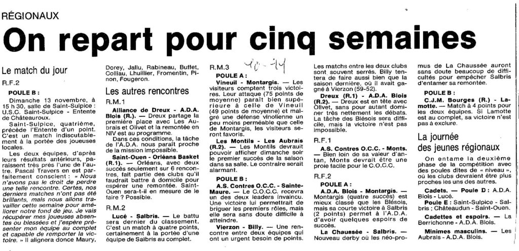 Saison 1994-1995 : Programme de la 7ème Journée pour les équipes du Loir et Cher dans les Championnats Régionaux