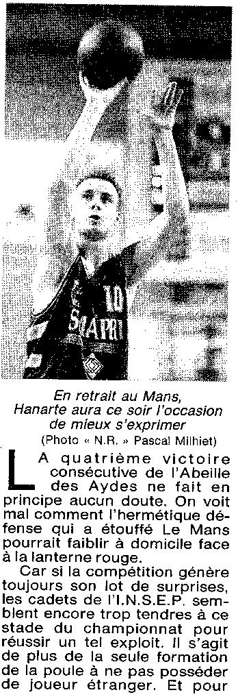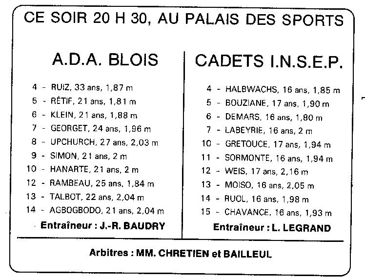 Saison 1994-1995 : En Championnat de Nationale Masculine 2, l’ADA Blois reçoit les Cadets de l’INSEP