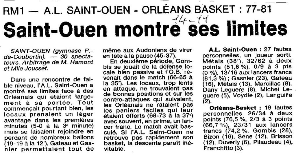 Saison 1994-1995 : En Championnat Régional Masculine 1, Orléans Basket bat l’AL Saint Ouen