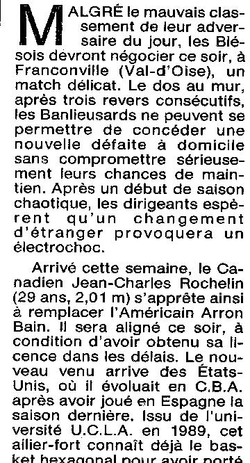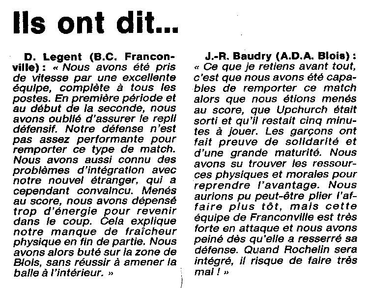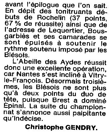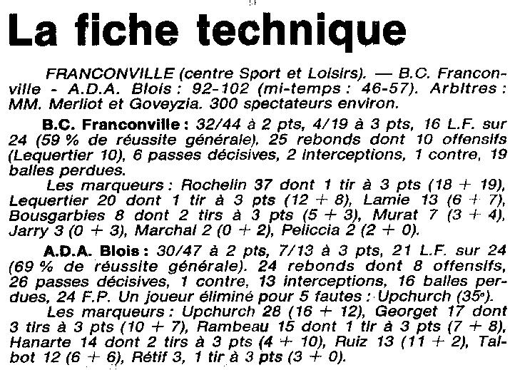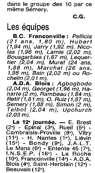 Saison 1994-1995 : En Championnat de Nationale Masculine 2, l’ADA Blois s’impose à Franconville