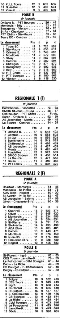 Saison 1994-1995 : Résultats et Classements de tous les Championnats Régionaux après la 9ème Journée