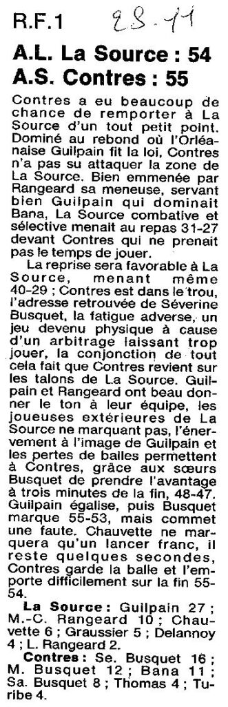 Saison 1994-1995 : En Championnat Régionale Féminine 1, AS Contres bat AL La Source