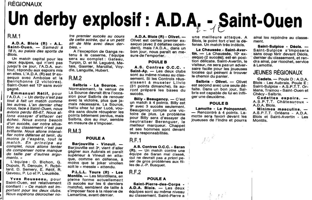 Saison 1994-1995 : Programme de la 10ème Journée des équipes du Loir et Cher dans les Championnats Régionaux