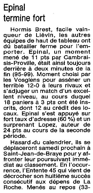 « Saison 1994-1995 : En Championnat Régionale Masculine 3, Billy bat l’ASPTT Bourges