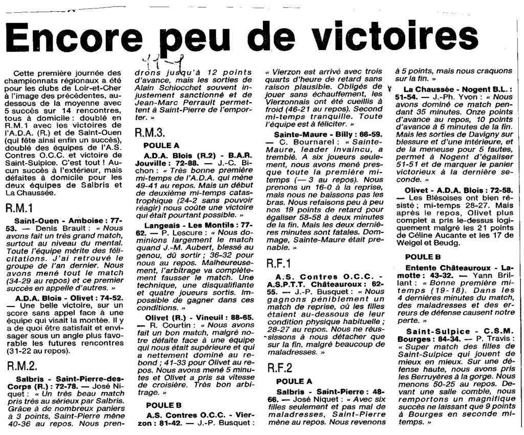 Saison 1994-1995 : Résultats de la 12ème Journée des équipes du Loir et Cher dans les Championnats Régionaux