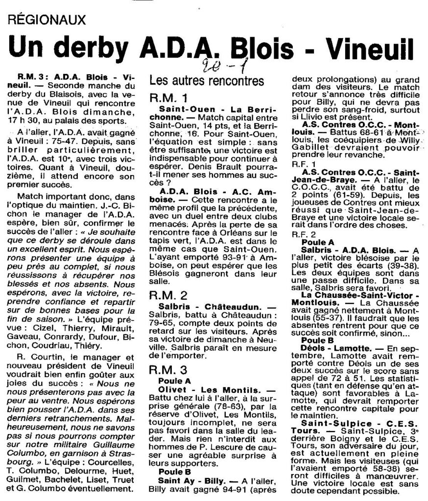 Saison 1994-1995 : Programme de la 14ème Journée des équipes du Loir et Cher dans les Championnats Régionaux