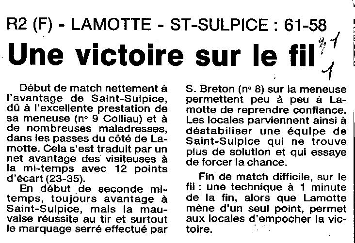 Saison 1994-1995 : En Championnat Régionale Féminine 2, Lamotte bat Saint Sulpice