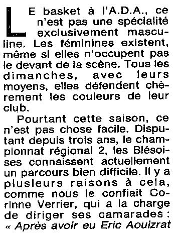 Saison 1994-1995 : Les Féminines de l’ADA Blois disputent le Championnat Régionale Féminine 2