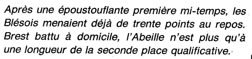 Saison 1994-1995 : En Championnat de France Cadets, victoire de l’ADA Blois face à Corbeil Essonne »