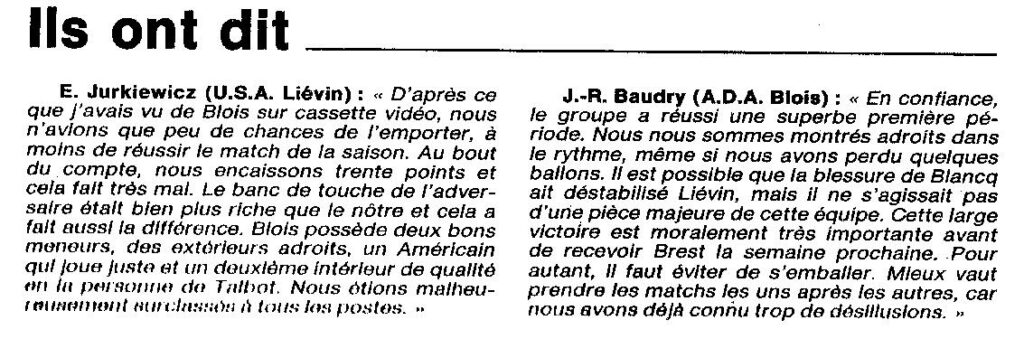 Saison 1994-1995 : En Championnat de Nationale Masculine 2, l’ADA Blois s’impose à Liévin