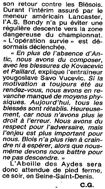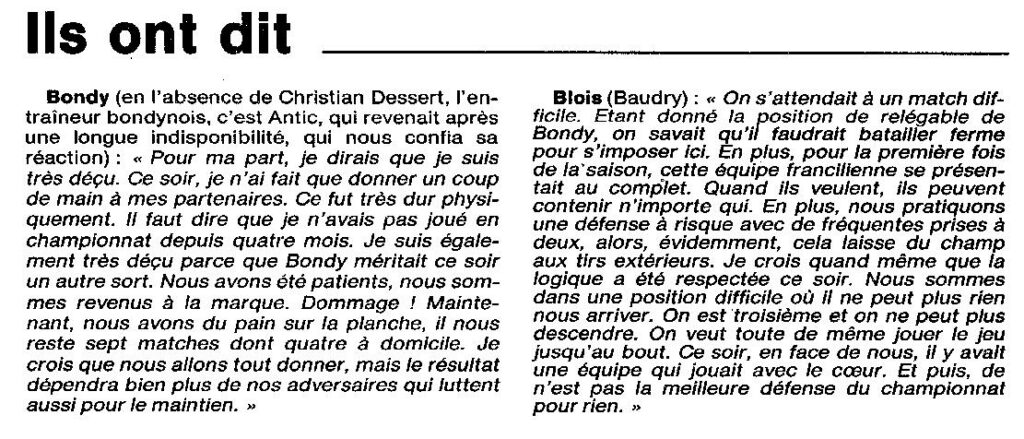 Saison 1994-1995 : En Championnat de Nationale Masculine 2, l’ADA Blois bat l’AS Bondy