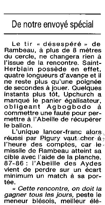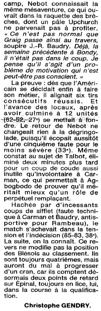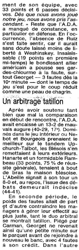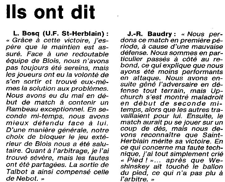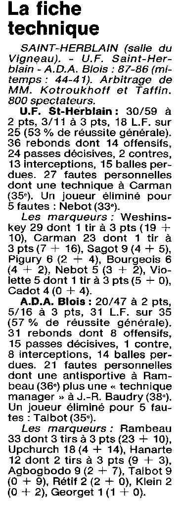 Saison 1994-1995 : En Championnat de Nationale Masculine 2, l’ADA Blois s’incline à St Herblain