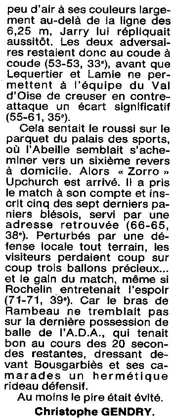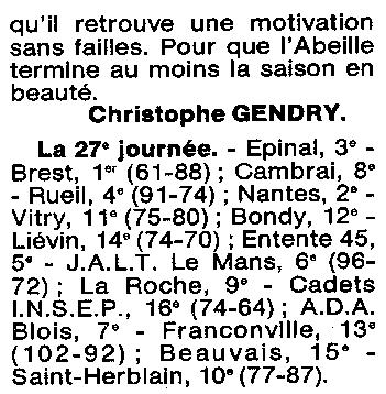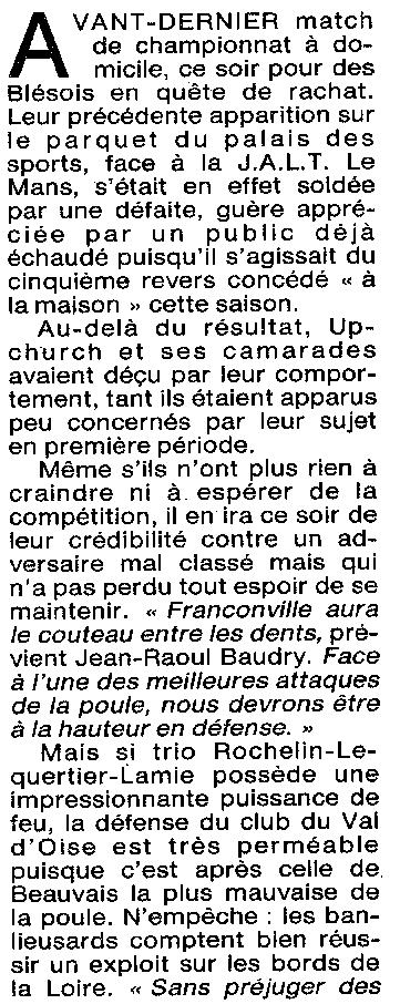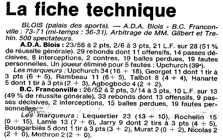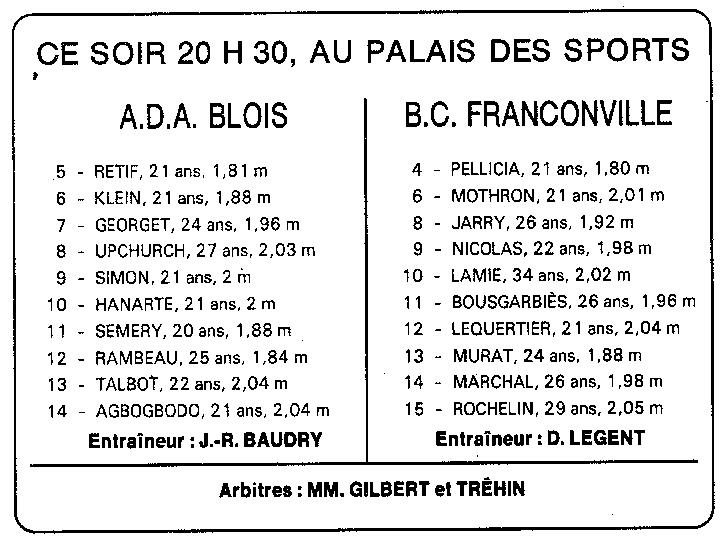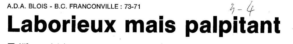 Saison 1994-1995 : En Championnat de Nationale Masculine 2, l’ADA Blois s’impose de justesse devant Franconville