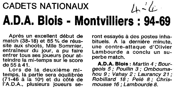 Saison 1994-1995 : En Championnat de France Cadets, l’ADA Blois l’emporte face à l’AL Montivilliers