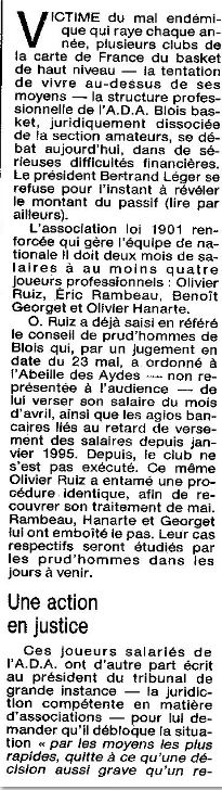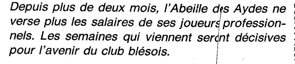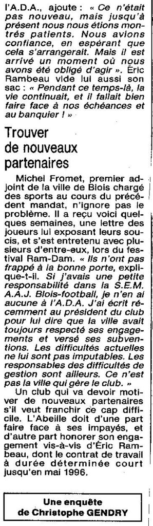 Saison 1995-1996 : Enquête de Christophe Gendry sur la situation de l’ADA Blois