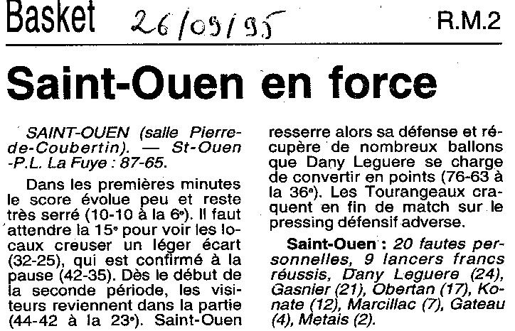 Saison 1995-1996 : En Championnat de Régionale Masculine 2, Saint Ouen bat PL La Fuye
