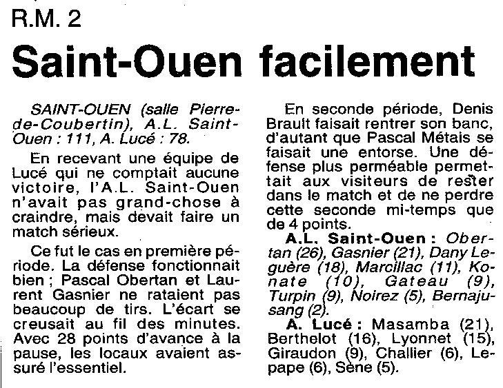 Saison 1995-1996 : En Championnat Régionale Masculine 2, Saint Ouen bat Lucé