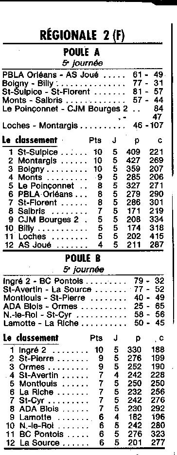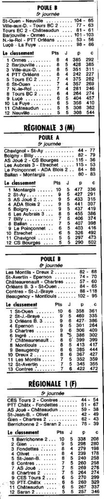 Saison 1995-1996 : Résultats et Classements après la 5ème Journée de tous les Championnats Régionaux